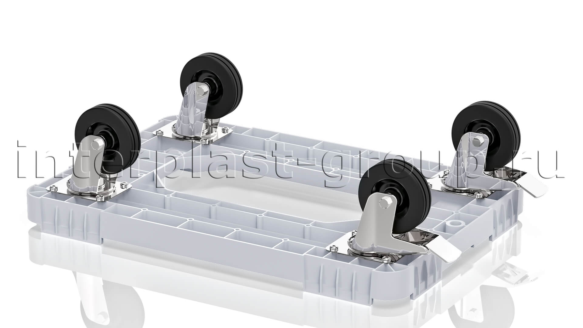 Тележка пластиковая с отверстием 2 колеса с тормозом серая